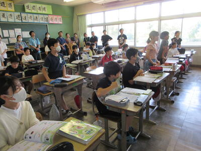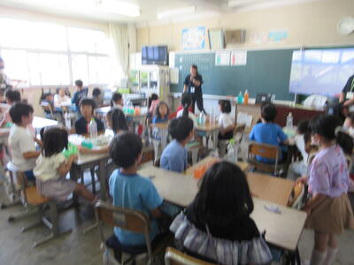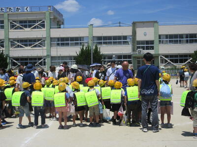 また、本日は、大変暑い中、学習公開へのご参観、引き渡し訓練への御協力ありがとうございます。災害は、いつ起こるかわかりませんが、万が一災害が起こった時は、児童の安全を第一に考え、対応を進めて参ります。引き渡しは、その対応の一つです。