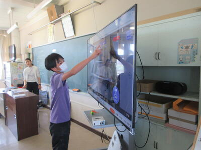 始まりの会をやりました。特別支援学校の校長先生のお話を聞きました。