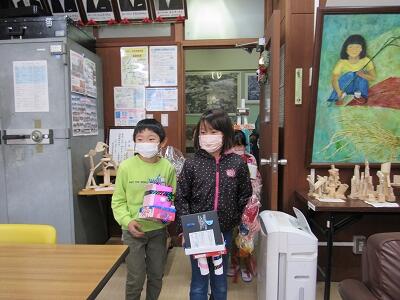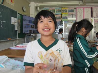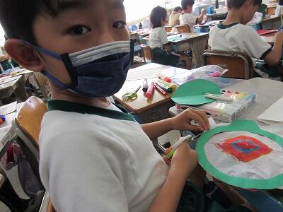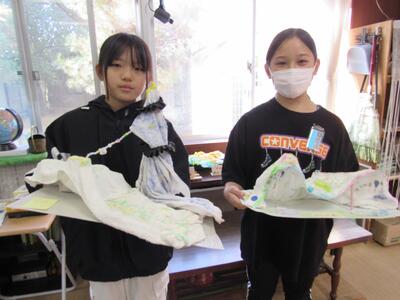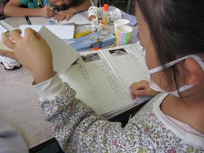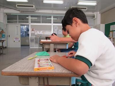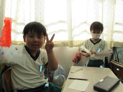 「ボンドがなかなかくっつかなくて・・・」 「しっかりと乾かそうね。」