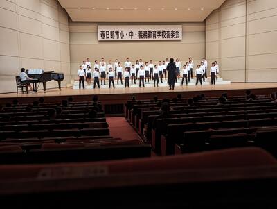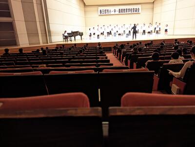 体育館の歌声と各教室内での歌声が校舎内に響いているね。