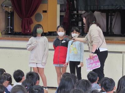 ◆業間休みに、4年生の自主学習の表彰を行っているよ。