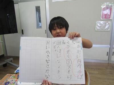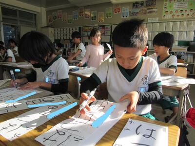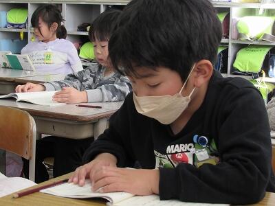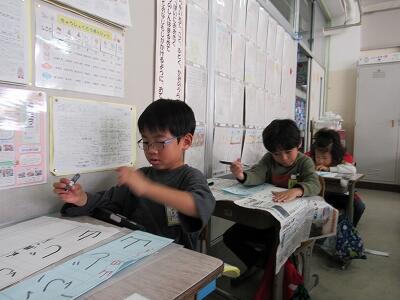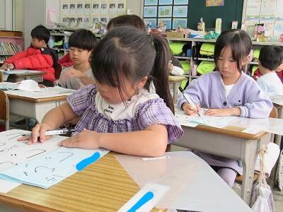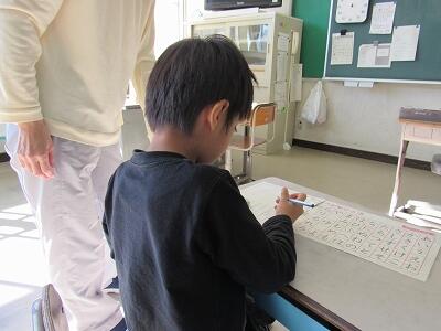 ◆となりの1年生は、漢字の書き順に注意しながら練習をしているよ。