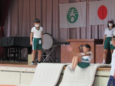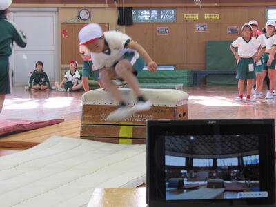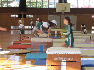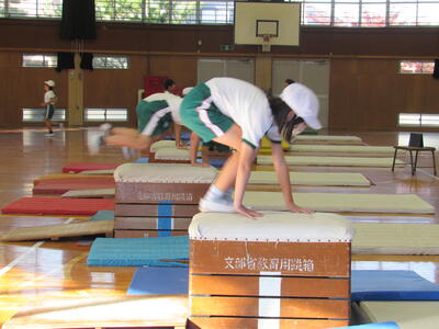 ◆体育館では、1年生が跳び箱運動に挑戦中。