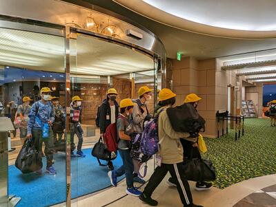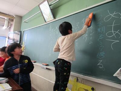 ◆1~5年生が下校後、6年生の前日準備が始まっているよ。