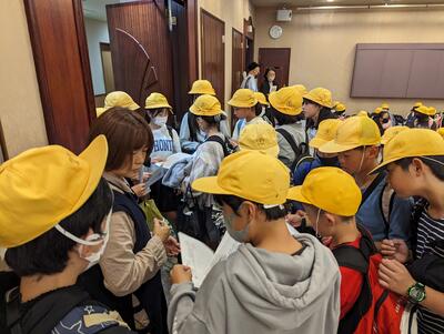 45分間で10学級を巡り、教育委員会の方を案内しています。