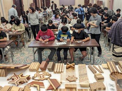 ◆3年生の図工では、木の切れ端を組み合わせて、お城かな? 大きな門かな?