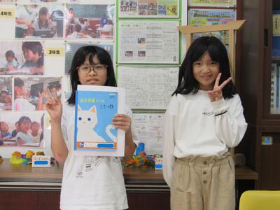 ◆昼休み、2年生の2人が九九検定で合格!! おめでとう。