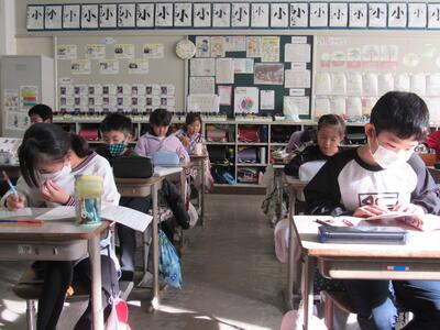 ◆4年生は、朝から緊張気味で2時間目をむかえているよ。