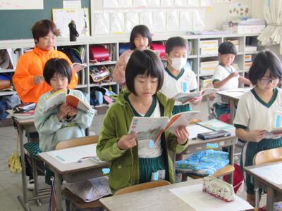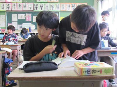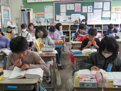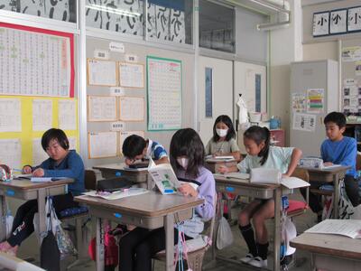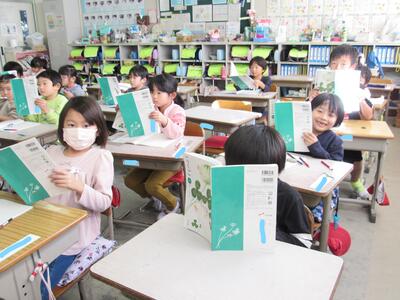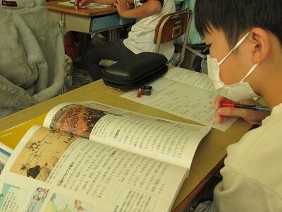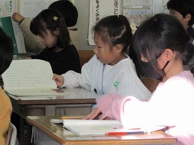 ◆となりの2年生は、国語で物語の読み取りをしているよ。