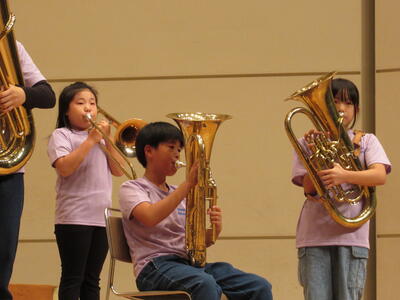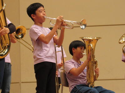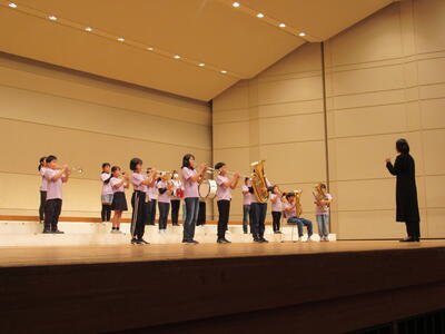音楽委員会のみんなが、音楽朝会をリードしているよ。