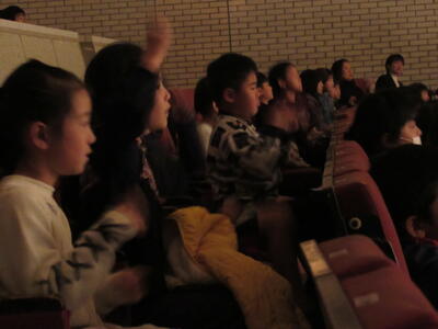 ◆「たんぽぽ・ひまわり学級」では、運動会の表現を大画面を見ながら練習しているよ。