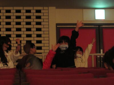 さあ、教室で大画面に向かっている1・3・5年生も一緒に歌おう!!