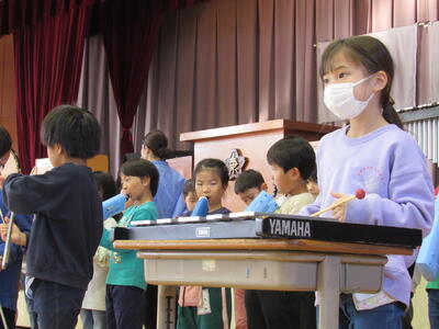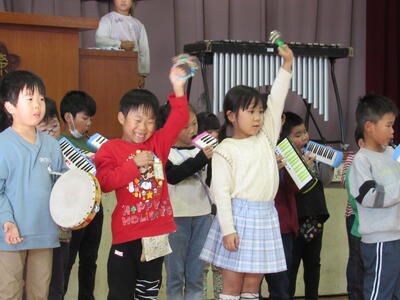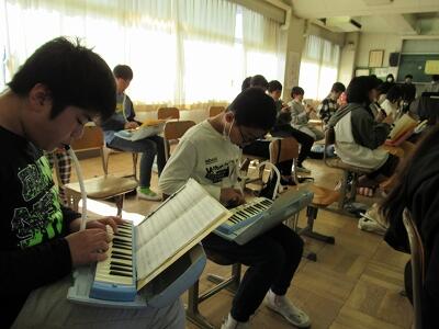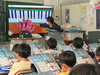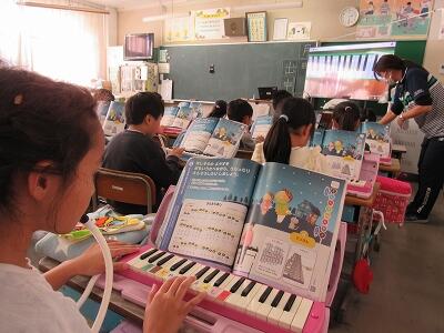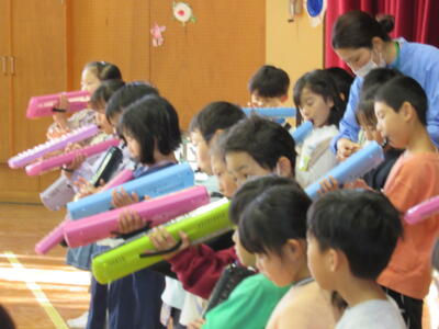 ◆2年生の音楽は、「小ぎつね」を鍵盤ハーモニカで演奏しているよ。