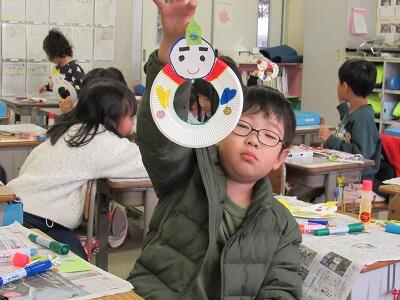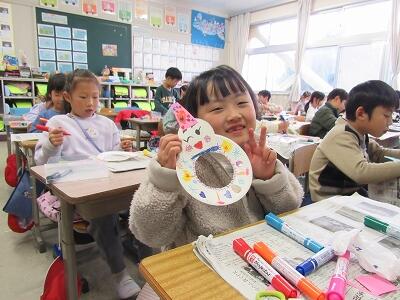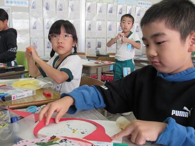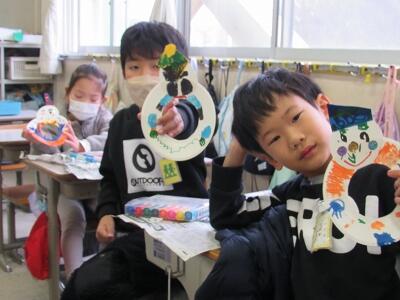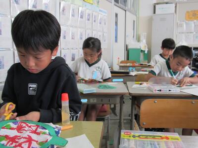 ◆1年生の図工は、色紙で色々な動物を作っているよ。