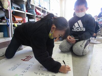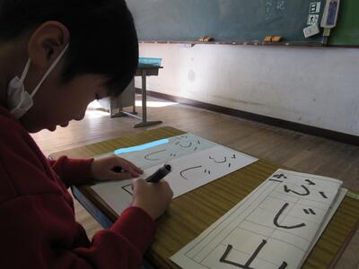 「校長先生、やっとここまできました。」 「なかなかいい字だねえ。」