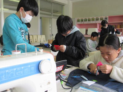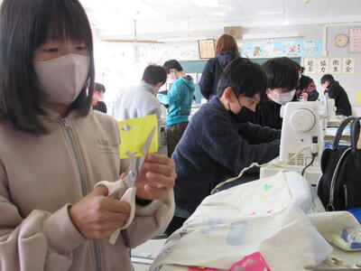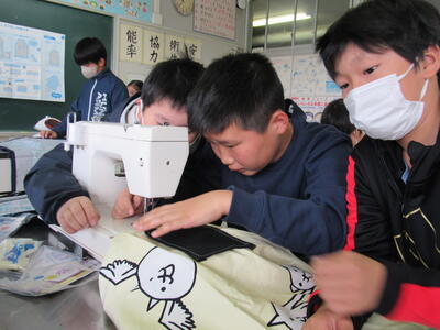先週は、ミシン縫いのよさを話合っていたね。これから実際に縫う準備段階。