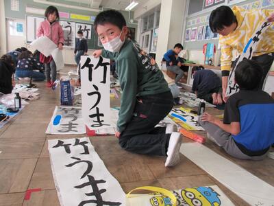 ◆4年生の書写は、「白馬」を毛筆で書いているよ。