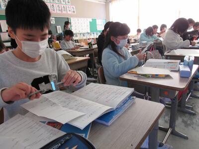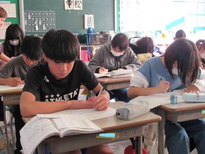 先生の板書をよく見て、ノートの使い方もバッチリだね。