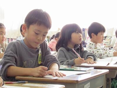 いつもの授業とは少し違って、緊張した表情の子どももいます。