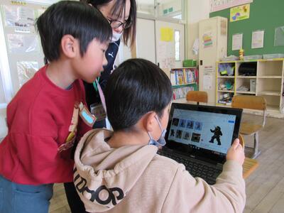 ◆2年生の生活科では、自分で作った動くおもちゃや遊んでいるところを写真撮影中!!