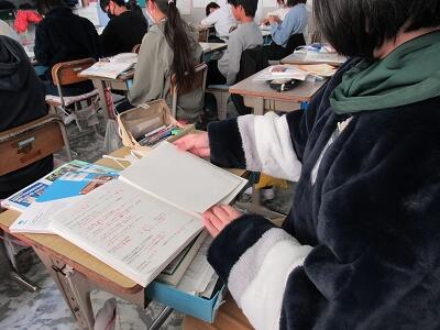 「しっかりとノートに書けているね。」 「ありがとうございます。」