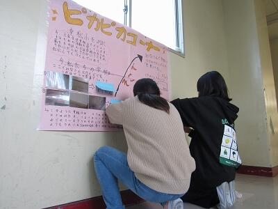 ◆今年は、2階昇降口を入り、北校舎へ行く通路に「自由研究」を展示しています。