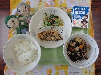 目によい食品(小松菜・じゃがいも・ブルーベリー)を使った献立です。小松菜に含まれている「カロテン」は、目の働き助けてくれ、じゃがいもに含まれる「ビタミンC」は、目をいきいきとさせてくれます。また、ブルーベリーに含まれる「アントシアニン」は、疲れた目を回復させてくれる働きがあります。