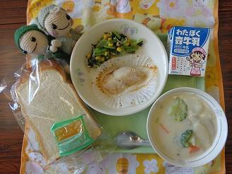 読書週間とコラボレーションした献立で、低学年になじみのある「こまったさんのコロッケ」の本の中にある料理を給食に取り入れました。