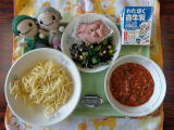 6月18日 投稿日時 : 2019/06/18 システム管理者 カテゴリ: 春日部野菜のボロネーゼ風パスタ牛乳鉄骨サラダいちご蒸しパン 【春日部市の地場産物献立】春日部市ではトマトとナスがたくさん栽培されています。このトマトとナスを使ったおいしいパスタ料理が「春日部野菜のボロネーゼ風パスタ」です。