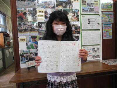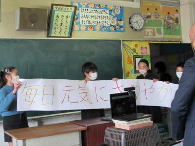 ↑ ↓ 6年生の代表児童からも、全校児童あてのメッセージが・・・