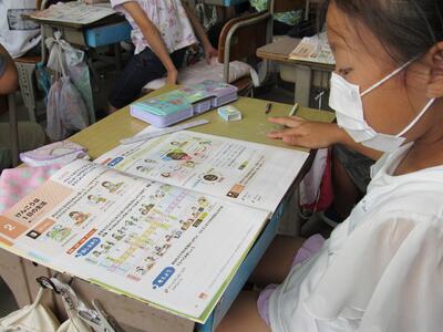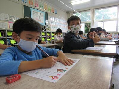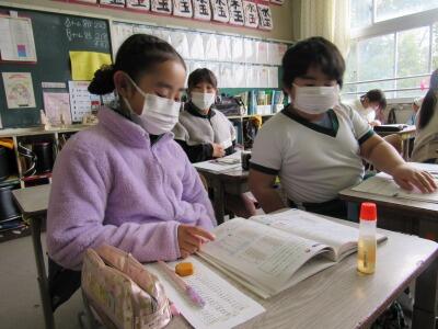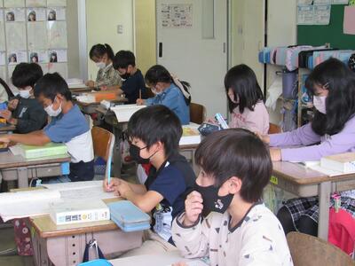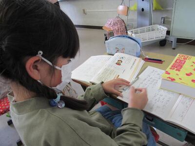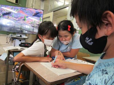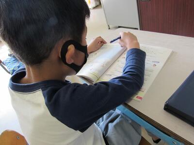 ◆「たんぽぽ学級」は、算数の課題にチャレンジしているよ。