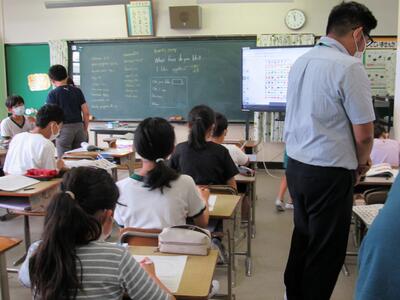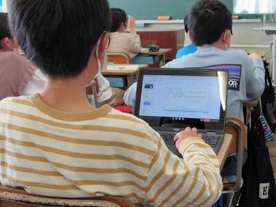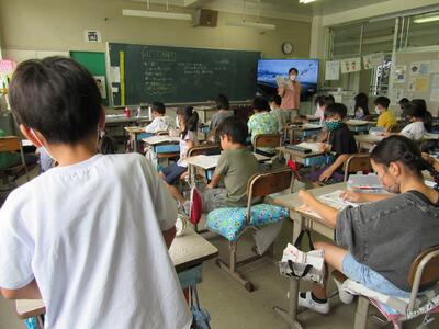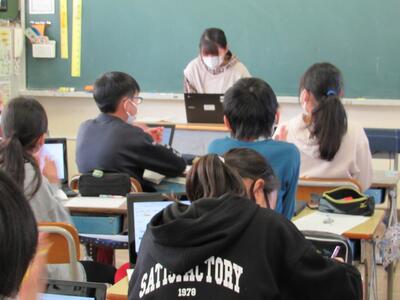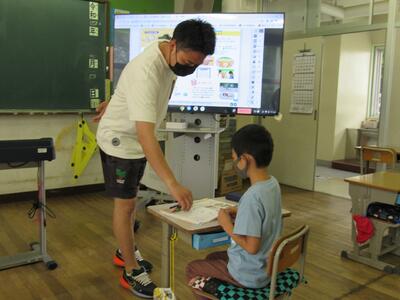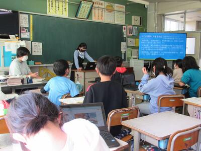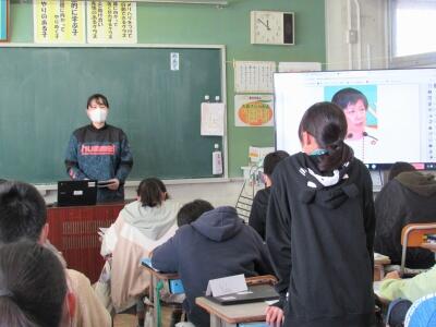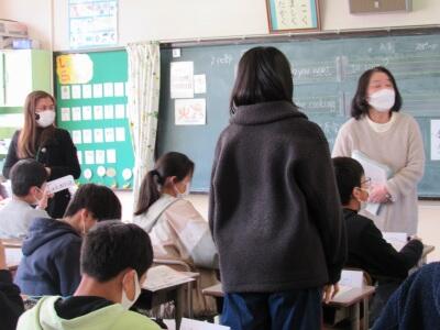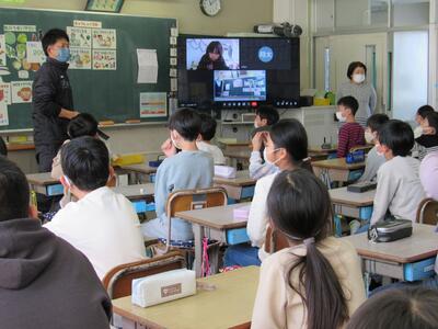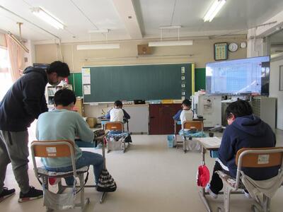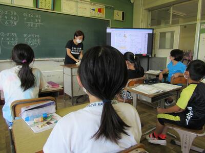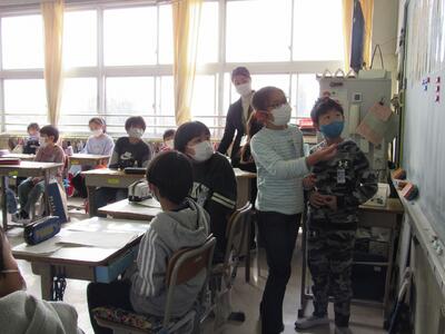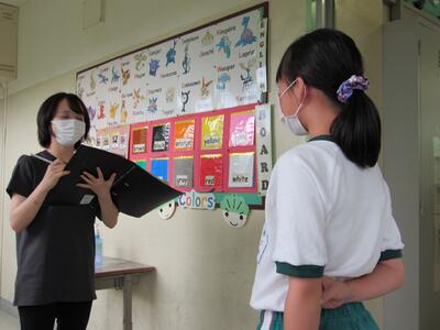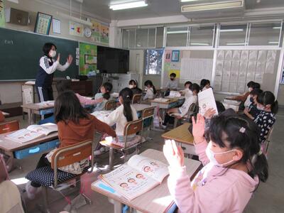 ◆6年生の外国語は、先生と一対一での対話を進めているよ。