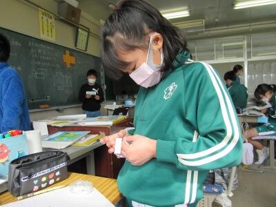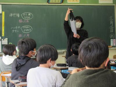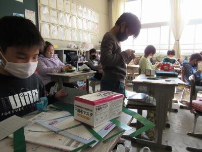 ◆5年生の家庭科では、手ぬいの学習を進めているよ。