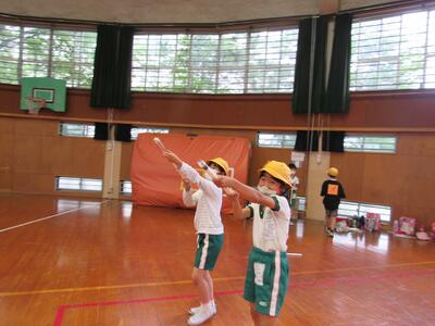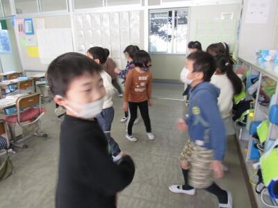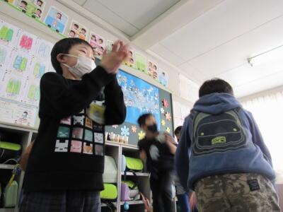 ◆1年生の音楽は、「トンクルリン、パンクルリン」のリズムを体で表現しているよ。