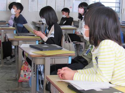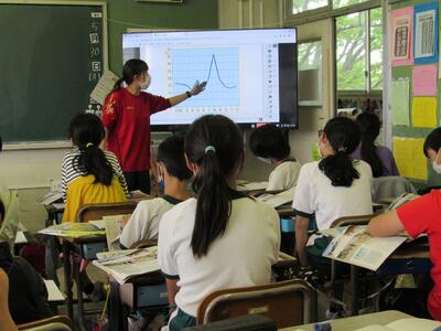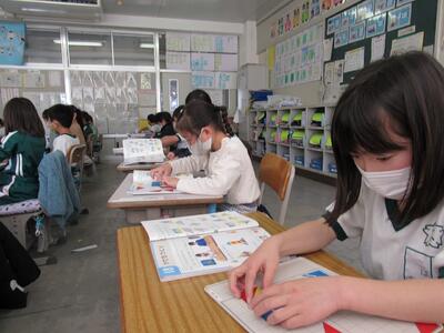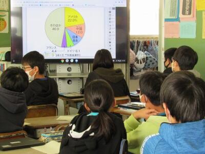 ◆4年生の社会は、市内のごみの量のグラフから気付いたことを話し合っているよ。