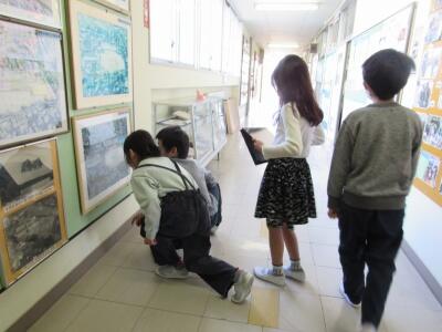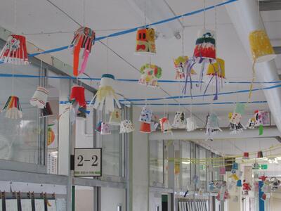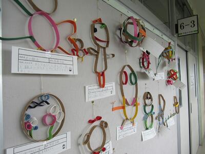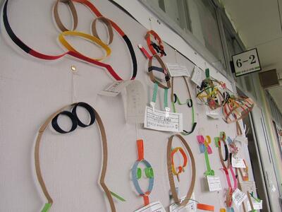 ろう下には、図工の作品が飾られいます。