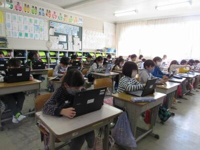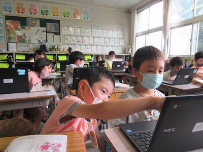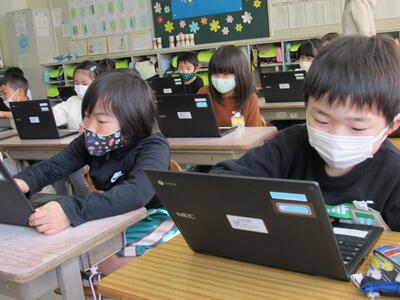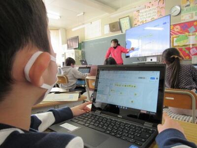 ◆1年生は、パソコンのジャムボード機能を使いこなそうと挑戦中だよ。