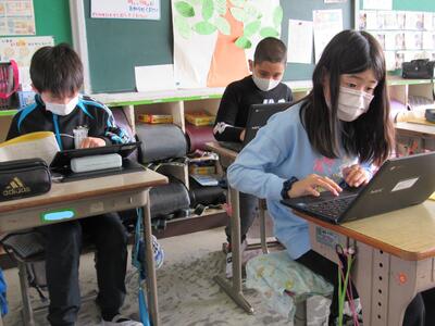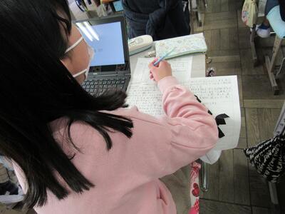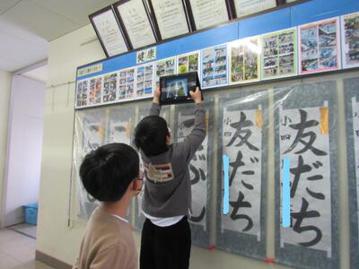 ◆3年生の国語は、「学校の自慢できるところを紹介しよう」と取材中!!