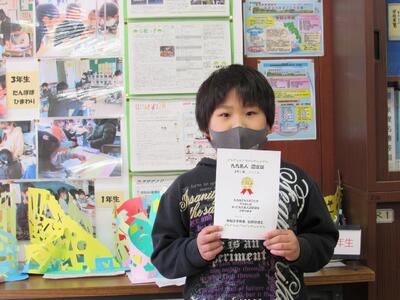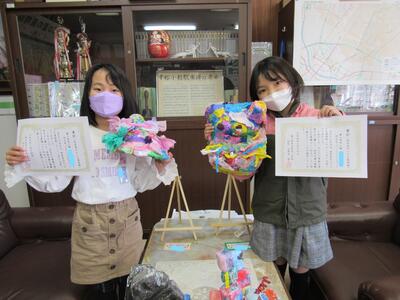 ◆昼休み、2年生2人に「校長室の小さな美術館」の表彰です。