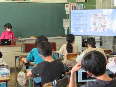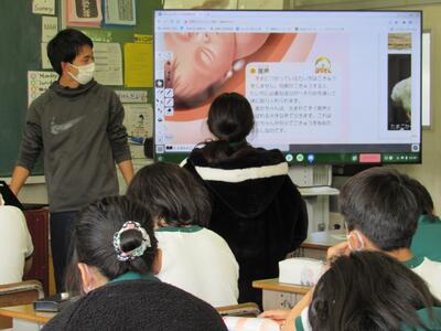 ◆となりの5年生は、理科で母親のお腹のなかにいる赤ちゃんについて学習中。