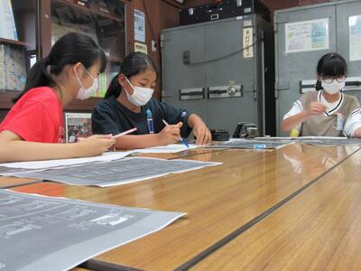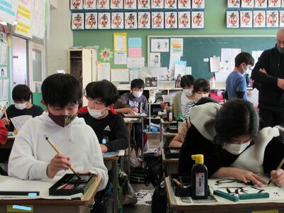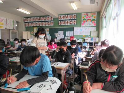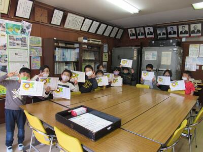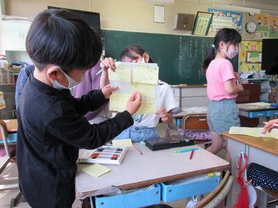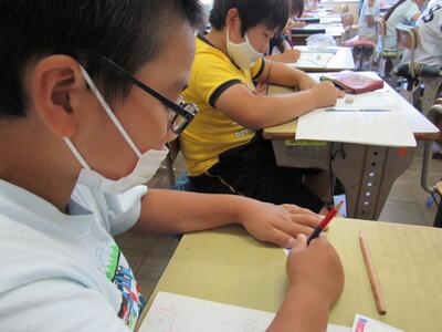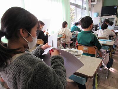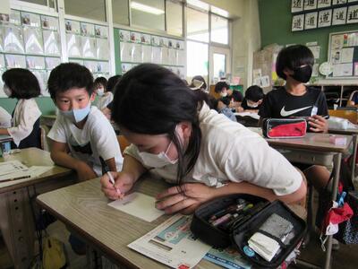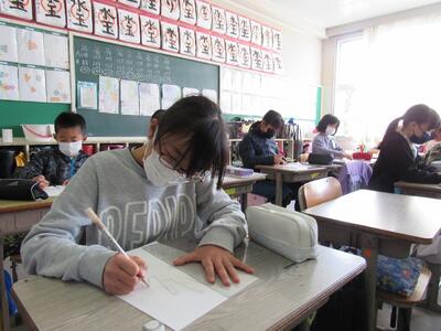 ◆5年生の書写は、はがきの書き方を学んでいるよ。