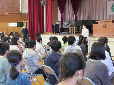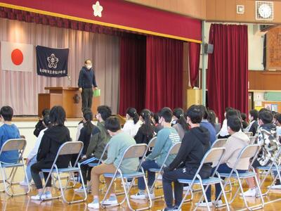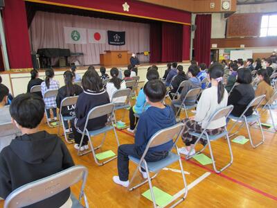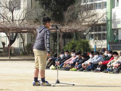3月の全校朝会では、1つ上の学年を目指して残りの日々をしっかりと過ごそうと投げかけました。