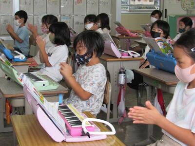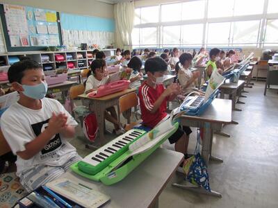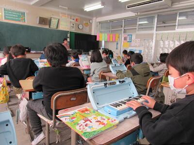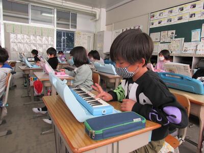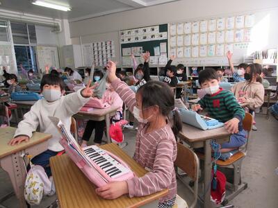 ◆2年生の音楽は、鍵盤ハーモニカの総復習をしているよ。