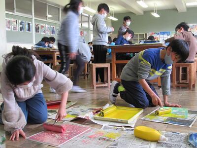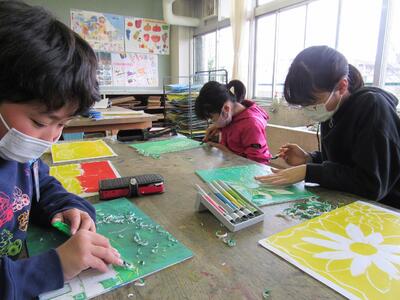 ◆図工室では、多色刷り版画に挑戦中の5年生!!