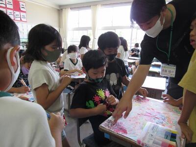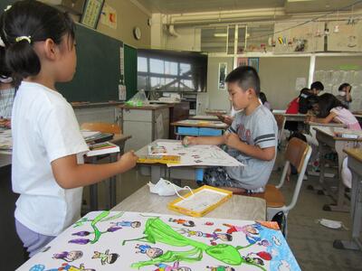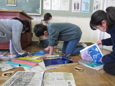 色を組み合わせ、きれいに版画が刷りあがってきたね。