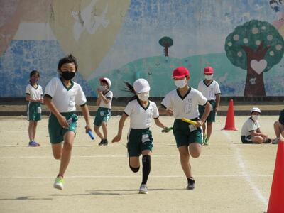 ◆5年生の体育では、リレー運動に取り組んでいるよ。