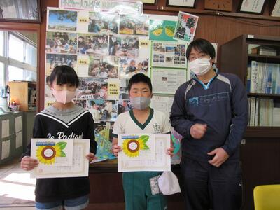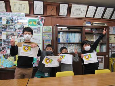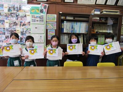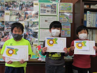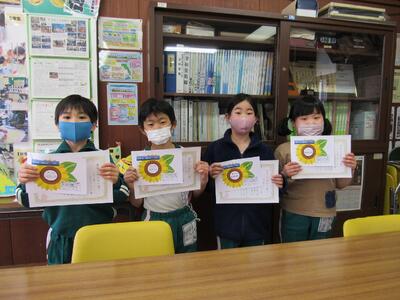 ◆校長室で、1年生の「ひまわり賞」の表彰を行っています。さらに素晴らしい2年生になっていってね。