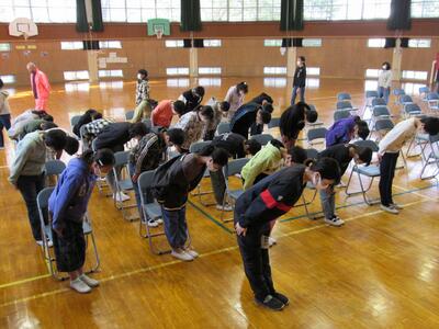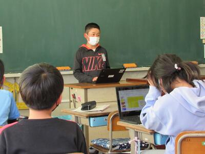 5年生の代表委員の児童が、会の進行・運営を務めているよ。