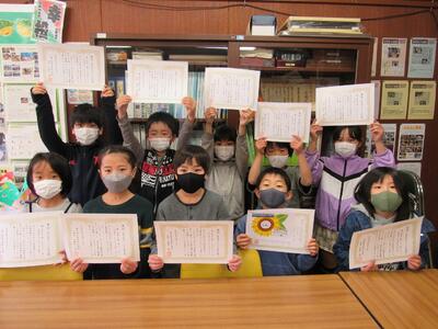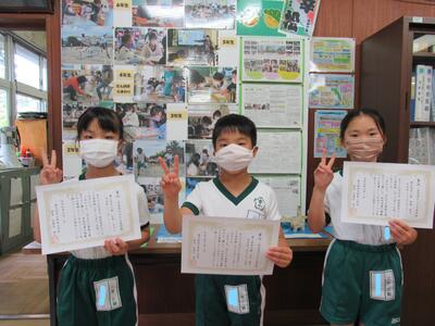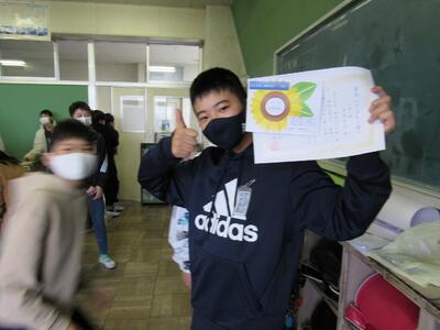 4年生には、「ひまわり賞」の表彰です。立派な5年生になってね。