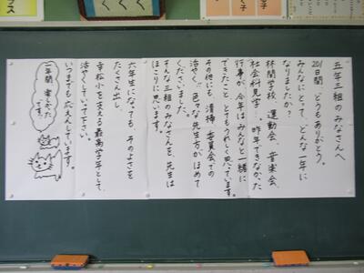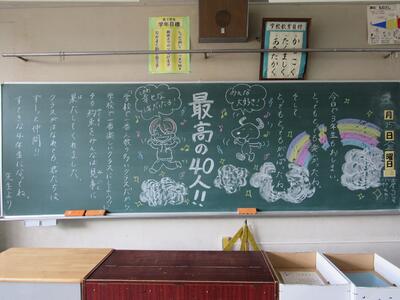 1年生が読みやすいマス目のある小黒板も活用した板書です。